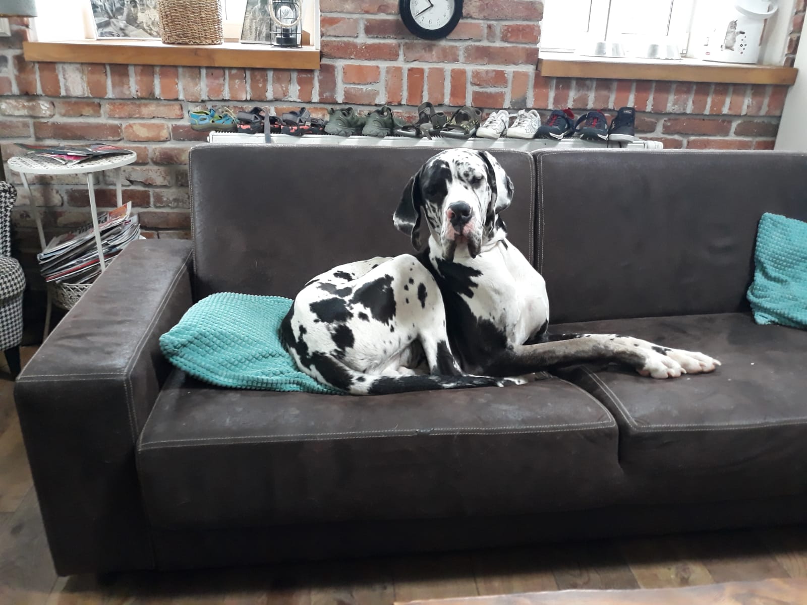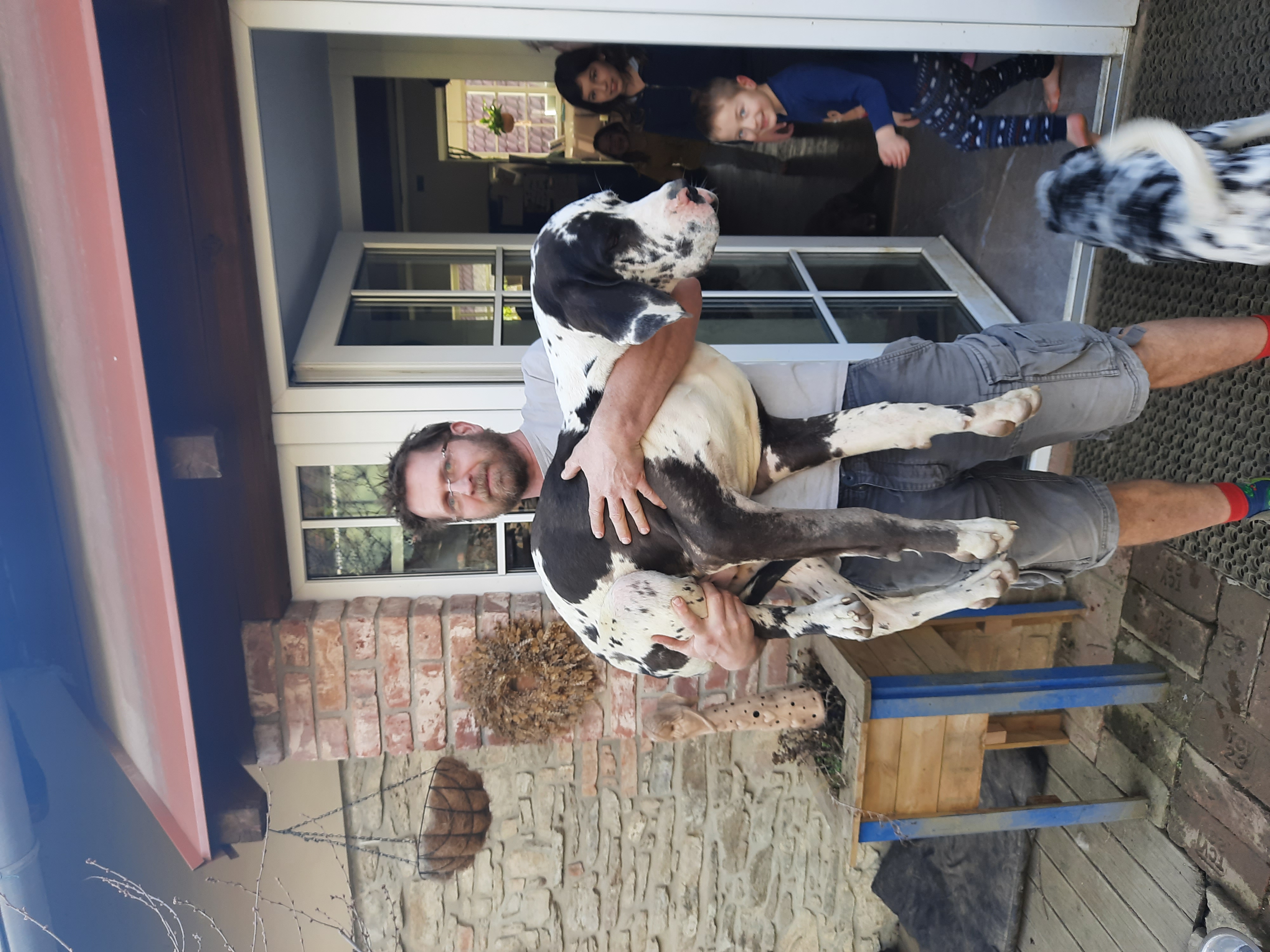 Poslední z party zachráněných je Šroubek (dříve Agar). Je to 2,5 letá německá doga, kterou jsme adoptovali od organizace Psí štěstí. Šroubek pochází ze Slovenska a byl odebrán majiteli pro týrání. Když jsme si ho 29.3.2021 jako 7 měsíční štěně přivezli vážil 30 kg, byl fyzicky a psychicky zlomený a měl před sebou serii ortopedických a očních operací. Čas ale hodně ran zhojí a i když měl za sebou psychické týrání (bití, svazovaní zadních nohou a zavírání do malých prostor) Šroubek na lidi nezanevřel a výsledkem je, že 30.10. 2021 složil canisterapeutické zkoušky a stal se dalším členem našich psích terapeutů. Více sekce canisterapie.