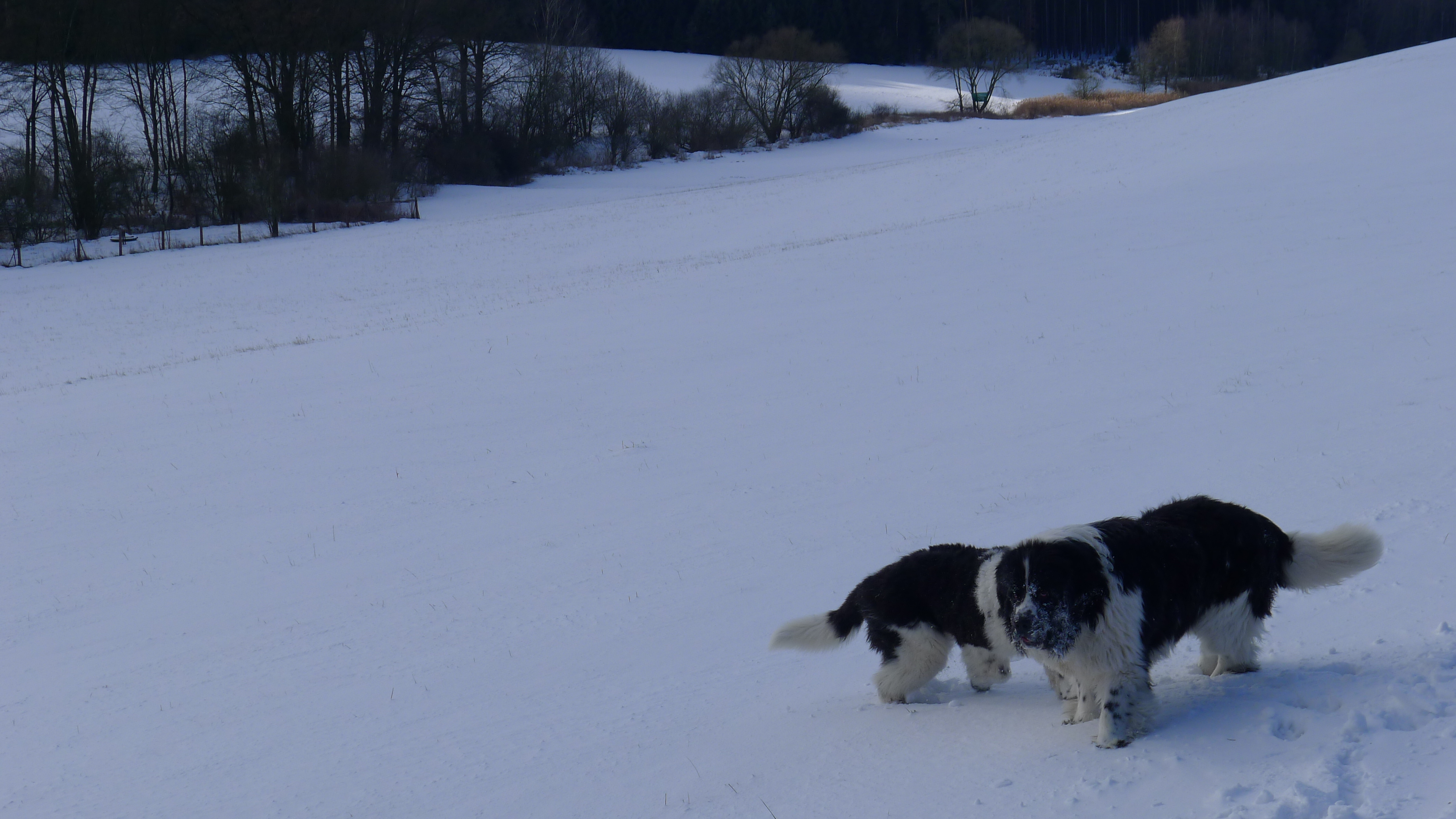 Další v naší smečce jsou novofundlandští psi. Máme celkem 4. Tři psy - Huga, Mozarta a Zeuse a jednu fenku Borůvku. Jistě vás bude zajímat proč tolik psů - odpověď je jednoduchá. Chtěli jsme chovat černobílé novofundlandské psy, ale člověk míní a osud mění a v důsledkem této zkušenosti se nám otevřela cesta pomoci psům týraným, vyhozeným nebo zapomenutým a cesta ke canisterapii